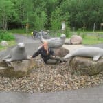 Der Weg war jedenfalls wunderschön und wir konnten die warme Abend-Sonne sehr genießen! Auch die Ausblicke waren phantastisch! Und wir sahen schließlich sogar tatsächlich einen Elch… Wieder ein Weibchen, also so ohne Geweih… Er stand mitten im Gebüsch und wir konnten nur den Kopf sehen, der munter fraß 😉 ich bin mir auch gar nicht sicher, ob es wirklich ein Elch war… Sah nämlich eher aus wie ein Esel 😛
